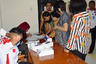 Sejumlah hakim dan pegawai di Pengadilan Negeri (PN) Sumbawa Besar, menjalani tes urine, Kamis (20/3). Tes yang dilakukan oleh pihak Badan Narkotika Nasional (BNN) Sumbawa Barat ini bertujuan untuk menghindari penyalahgunaan narkoba di instansi tersebut.