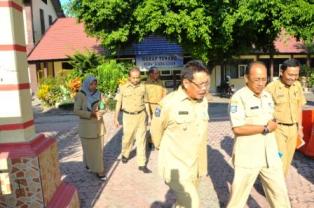 Wakil Bupati Sumbawa Drs H Arasy Muhkan meninjau langsung pelaksanaan Ujian Nasional (UN) SMP/MTs. Saat mengunjungi sejumlah sekolah yang diawali di SMPN 1 Sumbawa, Selasa (6/5), Wabup didampingi sejumlah pejabat di antaranya Asisten Pemerintahan, Kepala Dinas Diknas, Kepala Bagian Organisasi, Kepala Bagian Adpem, dan Kepala Bagian Humas Protokol.