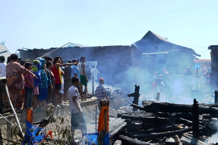 Masrah, Bahar, Rahmat, Sandi dan Badong. Semua rumah ini adalah rumah panggung berdinding bedek (bambu) yang merupakan bahan yang mudah terbakar. Warga pun meminta bantuan petugas pemadam kebakaran yang dalam waktu singkat sudah tiba di lokasi. Pemadaman api cukup alot, bahkan lima unit mobil PMK harus bolak-balik untuk mengambil air. Api baru dapat dipadamkan sejam kemudian, namun kelima rumah sudah menjadi arang.