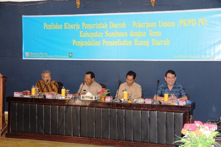 Kabupaten Sumbawa berhasil masuk dalam lima besar Penataan Ruang dan Wilayah Tahun 2014. Hal inilah yang menjadi latar belakang kunjungan Lapangan Shortlist Tim Penilaian Kinerja Pemerintah Daerah (PKPD) PU Bidang Penataan Ruang Tahun 2014 Kementerian Pekerjaan Umum, Selasa (30/9). Tim yang terdiri dari Ketua Rombongan (Tim Pelaksana) M Rasyidi Harahap, Koordinator Juri Andi Oetomo, dan Dewan Juri yaitu IF Purnomosidi Purwo dan Nirwono Yoga ini disambut Bupati Sumbawa Drs H Jamaluddin Malik didampingi Sekda Drs H Arasy Muhkan di Wisma Daerah.
