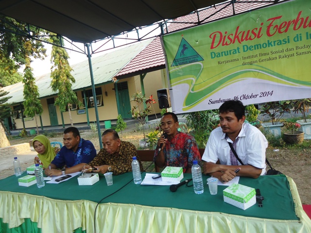 Pemilihan Kepala Daerah (Pilkada) melalui DPRD dinilai telah merampas kedaulatan yang berada di tangan rakyat. Hak dipilih dan memilih yang melekat dalam setiap diri harus terampas secara paksa, sehingga berdampak secara sistematis terjadinya kemunduran system demokrasi yang seharusnya sudah maju di Indonesia. Sebagai bentuk keprihatinan, sejumlah elemen masyarakat di Kabupaten Sumbawa menggabungkan diri dalam Gerakan Rakyat Sumbawa Pro Demokrasi menggelar diskusi bertema “Indonesia Dalam Darurat Demokrasi”.