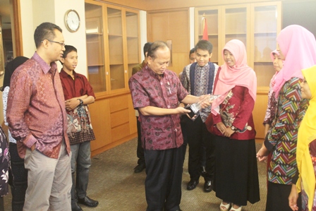 Saat diterima menteri, Cindy Suci Ananda, Mochammad Isro Alfajri, Adelia Elviantari, Fahmi Dwilaksono, Muhammad Al Azhar, Rian Adha Ardinata, Yulianti, dan Indah Nurulita, serta dua dosen selaku instruktur Sausan Nafisah dan Maya Fitriana, didampingi Rektor UTS, Dr H Zulkieflimansyah SE M.Sc.
