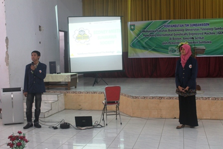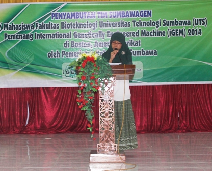 Bupati Sumbawa, Drs H Jamaluddin Malik menyatakan keberhasilan Tim Sumbawagen Universitas Teknologi Sumbawa (UTS) bukan kebanggaan UTS semata melainkan masyarakat dan daerah Sumbawa. Kesuksesan UTS meraih tiga prestasi dunia pada IGEM (International Genetically Engeenered Machine)—kompetisi Biologi Sintetik di Boston Amerika Serikat ini sebagai bukti bahwa tidak ada yang tidak mungkin dilakukan dan dicapai apabila mau berusaha dan bekerja keras. “Acara hari ini bentuk kesyukuran sekaligus salah satu yang menyemangati kita semua,” kata JM—akrab Bupati disapa saat acara syukuran dan penyambutan Tim Sumbawagen yang digelar di Gedung Wanita Sumbawa, Selasa (11/11).