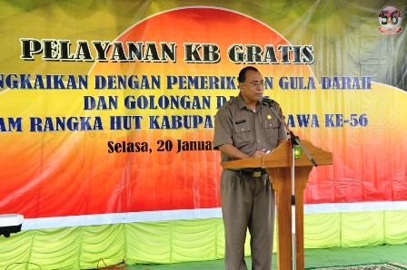 Kepala BKBPP Kabupaten Sumbawa selaku Seksi Bakti Sosial HUT Ke 56 Kabupaten Sumbawa, Ir A Yani melaporkan, pekan pelayanan KB gratis di seluruh kecamatan Kabupaten Sumbawa telah berlangsung dari tanggal 12 Januari 2015 dengan menyasar 1.221 Akaseptor terdiri dari IUD 180, Implant 484, Suntikan 468, Pil 74 dan Kondom 15 Akseptor. Pemeriksanaan Golongan Darah Gratis sebelumnya dilakukan di Pesantren Abubakar, Pesantren Muhammadiyah, dan Pesantren NWDI yang melibatkan seluruh santri. Kegiatan puncak pelayanan KB gratis diintegrasikan dan dipadukan dengan pemeriksaan PAP Smear sebanyak 389 orang, pemeriksaan gula darah yang bekerjasama dengan Balai Laboratorium Kesehatan Masyarakat Pulau Sumbawa dengan 100 sasaran.