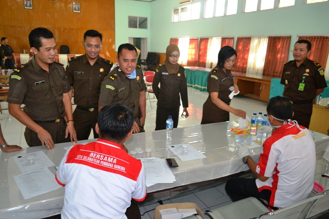 Tes ini dilakukan secara mendadak terhadap 30 orang personilnya termasuk 14 orang jaksa. Ini bentuk keseriusan dan komitmen kejaksaan untuk memberantas narkoba. Karenanya Kajari mengingatkan masyarakat untuk tidak sekali-kali bersentuhan apalagi menkonsumsi narkoba selain merusak kesehatan dan generasi juga berisiko hukum.
