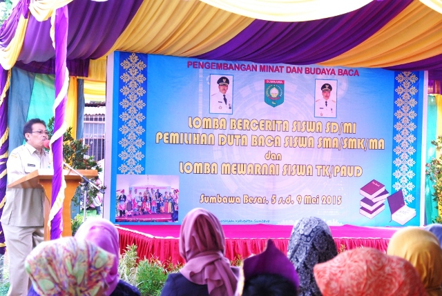 Kantor Arsip dan Perpustakaan Daerah (Arpusda) Kabupaten Sumbawa kembali menggelar Lomba Bercerita, Pemilihan Duta Baca dan Lomba Menggambar tingkat Kabupaten Sumbawa Tahun 2015. Kegiatan bermanfaat yang digelar di halaman Kantor Arpusda, Selasa (5/5) tadi, bertujuan untuk mengembangkan minat dan budaya baca.