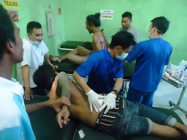 Data yang dihimpun Samawarea di RSUD KSB, menyebutkan tujuh orang yang terkena tembakan aparat adalah Sudarman warga Kelurahan Kuang tertembak di alis mata kiri, Muhammad warga Kenangan di selangkangan kiri, Gozali warga KTC di perut atas bagian kiri, Egy warga Desa Fajar di siku tangan kanan, Toniman warga Sampir tertembak di punggung kanan atas, Selamet juga asal Sampir di perut kiri, dan Hamdani warga Lingkungan Bosok tertembus di bagian pantat. Selain itu di lokasi bentrok warga mengamankan 7 selonsong peluru.