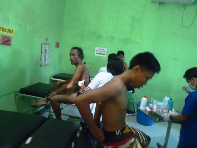 Petugas medis RSUD Sumbawa Barat pada Minggu (17/5) terlihat sibuk. Satu per satu pasien korban penembakan polisi dibopong masuk ke ruang Instalasi Gawat Darurat (IGD). Sekitar 7 perawat dan dua dokter langsung mengambil tindakan karena melihat luka yang diderita sedikitnya 7 pasien ini sangat serius.