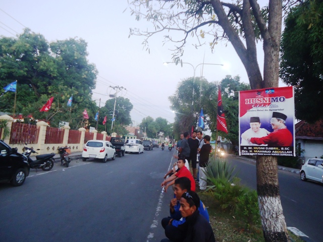 Untuk diketahui sejak kemarin, umbul-umbul, bendera, baliho dan stiker pasangan calon Husni—Mo sudah terpasang dan berjajar di sepanjang Jalan Garuda—Diponegoro. Bahkan di pusat pelaksanaan deklarasi (Gedung Wanita) masih terlihat sibuk untuk melakukan segala persiapan agar pelaksanaan kegiatan berjalan sukses. (Jen/SR)