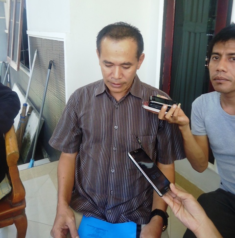 CAPTION: Sekretaris DPD Nasdem Sumbawa, Mujahidin Damhoedji saat gelar jumpa pers, sebulan yang lalu (Foto: SR/doc)