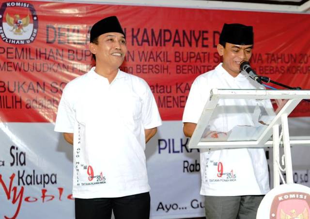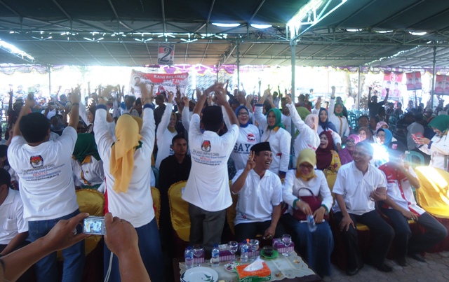 Pasangan Calon Bupati dan Wakil Bupati Sumbawa, H Asaat Abdullah ST—Chandra Wijaya Rayes ST, mendapat giliran kedua dalam menyampaikan orasi politik pada Deklarasi Kampanye Damai yang digelar di Kantor KPU Kabupaten Sumbawa, Kamis (27/8). Pasangan bernomor urut 2 yang dikenal dengan sebutan Saat-Jaya ini diusung Partai Hanura, Nasdem, PKPI dan PPP. Dengan salam dua jarinya yang populer ini, pasangan beda generasi digadang dan memiliki kans menjadi pemenang pada Pilkada mendatang.