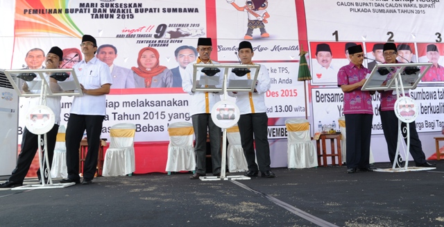 Tuntas sudah Debat Kandidat pasangan calon bupati dan wakil bupati sumbawa yang digelar di tiga lokasi (zona). Debat I di kantor Bupati Sumbawa, dan Debat II di Lapangan Padak Bintang Kecamatan Alas. Terakhir, Kamis (12/11) di Lapangan Sepak Bola Desa Pekat Kecamatan Plampang. Artinya Komisi Pemilihan Umum (KPU) Kabupaten Sumbawa telah sukses melaksanakan salah satu pekerjaan terberat dengan predikat aman dan kondusif. Untuk Debat Kandidat Jilid III sekaligus pamungkas ini, KPU mendesain lokasi berbeda dari debat 1 dan 2. Nuansanya lebih condong ke etnik Sumbawa karena disisipi adat dan budaya Samawa. Pasalnya debat kandidat tersebut diawali dengan pemukulan rantok—salah satu alat penumbuk padi. Selain itu calon yang akan naik panggung harus mencuci tangan di empat buah pancuran dari tempayan (gentong) yang telah disiapkan di sisi kiri dan kanan panggung. Tak hanya itu, seluruh komisioner KPU mengenakan pakaian adat Samawa.