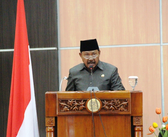 Bupati menyampaikan secara garis besar kondisi makro perekonomian nasional yang dipandang cukup berpengaruh baik secara langsung maupun tidak langsung dalam proses serta akselerasi pembangunan di daerah ini. Sebagaimana diketahui, perkembangan perekonomian nasional menjelang berakhirnya Tahun Anggaran 2015 ini belum menunjukkan peningkatan yang signifikan. Ketidakpastian perekonomian nasional ini merupakan dampak dari melambatnya perekonomian dunia secara keseluruhan, yang dipicu oleh perlambatan ekonomi global serta melemahnya harga komoditas di pasar internasional. Kondisi tersebut sangat mempengaruhi perekonomian dalam negeri, seperti melambatnya pertumbuhan ekspor dan investasi. Kondisi ini semakin diperparah dengan terjadinya perang mata uang dunia (currency wars) yang berimplikasi pada terjadinya fluktuasi nilai tukar mata uang sejumlah negara di dunia, terutama negara-negara di kawasan Asia, Afrika, dan Timur Tengah. Meskipun Indonesia dinilai tidak termasuk dalam negara-negara di Asia yang terkena dampak dari perang mata uang dunia tersebut, namun nilai tukar rupiah sempat menembus level Rp 14.120 per Dolar Amerika. Kondisi ini memaksa pemerintah untuk segera mengambil langkah-langkah ekspansif namun strategis untuk mengatasi lesunya perekonomian nasional. Berbagai kebijakan yang bersifat strategis dalam bentuk paket kebijakan ekonomi telah diambil pemerintah. Hingga saat ini pemerintah telah meluncurkan enam paket kebijakan ekonomi. Meskipun belum begitu berdampak, namun secara berangsur-angsur perekonomian nasional sudah mulai menunjukkan geliat yang lebih baik. Nilai tukar rupiah terhadap Dolar Amerika terus mengalami penguatan. Data terakhir pada akhir pekan kemarin menunjukkan nilai tukar rupiah ditutup pada level RP 13.685 per Dolar Amerika, namun masih lebih tinggi dari asumsi yang disepakati dalam APBN-P 2015 sebesar Rp 12.500 per Dolar Amerika.