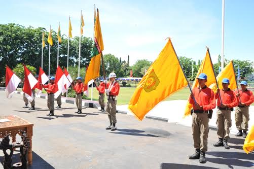 Setelah dikirab ke semua Kecamatan sejak 18 Januari lalu, kini Pataka Lambang Kabupaten Sumbawa disemayamkan kembali melalui Upacara Prosesi Penerimaan Kirab Pataka di Kantor Bupati Sumbawa, Kamis (21/1). Pataka Lambang Kabupaten yang dibawa rombongan Pasukan Pataka yang diiringi regu Bhineka Tunggal Ika Akper Samawa, Drumband SMPN 1 Sumbawa, Drumband SMPN 2 Sumbawa, dan Drumband SDN Karang Dima ini diterima Koordinator Kirab dari Camat Sumbawa yang kemudian diserahkan kepada Pelaksana Tugas (PLT) Bupati Sumbawa Drs. H. Rasyidi.
