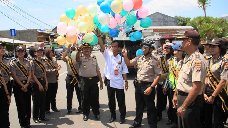 Puluhan Polwan Polres Sumbawa bersepeda mengelilingi Kota Sumbawa, Rabu (31/8) siang tadi. Ikut mendampingi para polisi cantik ini di antaranya Kapolres Sumbawa, Kabag Ops, Kasatlantas dan beberapa perwira lainnya. Mereka pun sempat rehat di Tugu Jam Gadang sekaligus menggelar serangkaian kegiatan simpatik di antaranya mensosialisasikan tertib berlalulintas kepada para pengguna jalan. Bagi yang tertib akan diberikan hadiah peralatan tulis menulis. Di tempat itu juga para Polwan beratraksi melakukan joget Lantas dan melepas ratusan balon ke udara. Kegiatan tersebut dalam rangka memperingati HUT Polwan ke 68 yang puncaknya, Kamis (1/9) besok acara syukuran dan video teleconference dari Kapolri. Sebelumnya para Polwan ini sudah melaksanakan anjangsana ke beberapa panti asuhan dan bhakti social ke sejumlah rumah ibadah.