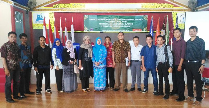 Setelah memperoleh predikat di bidang penelitian pada kluster madya, kini Lembaga Penelitian dan Pengabdian Kepada Masyarakat (LPPM) Universitas Samawa (UNSA) bertekad menuju kluster utama. Hal tersebut mengemuka pada kegiatan Sosialisasi Program Kerja LPPM dan Pengelolaan Manajemen Kluster Penelitian untuk tahun 2016-2017, Senin (26/9). Kegiatan sosialisasi itu diikuti 111 dosen tetap UNSA.