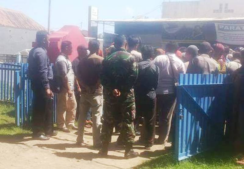 Kantor Perusahaan Listrik Negara (PLN) Ranting Plampang, didemo puluhan massa, Rabu (12/10) siang. Dalam aksinya, massa yang tergabung dalam Front Keadilan Rakyat (FKR), Gerpad dan Jankis ini menyegel pintu utama kantor tersebut dengan cara memaku kayu pada posisi melintang.