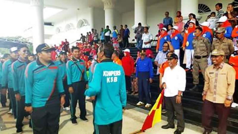 Baju basah kuyup keringatan, napas ngos-ngosan dan kaki kaku sedikit keram. Wajah yang sebelumnya segar bugar dan selalu tebar pesona dengan kacamata hitam ala Boy Band, berubah lusuh. Itulah yang dirasakan para jurnalis di Kabupaten Sumbawa Barat (KSB) yang tergabung dalam Komunitas Pers (Kompers) usai mengikuti Gerak Jalan Cepat dalam rangka memeriahkan Hari Lahir (Harlah) KSB ke-13, Kamis (17/11). Keikutsertaan Kompers ini terbilang mendadak. Keinginan untuk ambil bagian bersama 152 regu gerak jalan tingkat umum, muncul begitu saja meski tanpa latihan sebelumnya. Meski demikian para pemburu berita tersebut bersemangat dan berambisi masuk tiga besar. Sepanjang rute yang dilalui, aplus dan suara riuh rendah dari warga terus memberikan semangat kepada awak media ini yang mantap mengayunkan langkah. Tak kalah semangatnya komandan regu Acep Suherlan—Konstributor MNC, meski terkesan memaksakan diri. Saat memasuki garis finish tak terhitung air mineral habis ditenggak untuk memulihkan dehidrasi. Maklum sebagian besar wartawan ini adalah ahli hisap alias perokok berat. Untungnya tidak ada dari mereka yang ditandu ke rumah sakit karena tidak sadarkan diri.