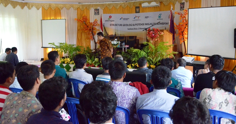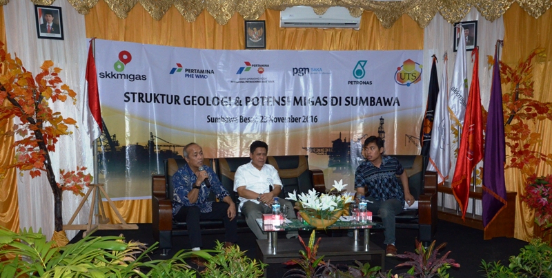 Dalam pemaparannya, Dr. Ir. Wafid, M.Sc menjelaskan bagaimana Badan Geologi berperan memetakan struktur tanah berdasarkan sedimentasi yang tercipta dari patahan dan lipatan. Dibahas juga mengenai pemetaan struktur sedimentasi yang terjadi di Sumbawa. “Sumbawa dikelilingi oleh cekungan-cekungan yang berpotensi adanya migas, seperti cekungan Flores Utara, cekungan Bali-Lombok Utara, Cekungan Sumba Selatan, dan beberapa cekungan lainnya. Namun umur dari sedimen yang terdapat di Sumbawa masih berumur tersier. Sedangkan untuk proses ekploitasi dibutuhkan sedimen yang berumur pra-tersier,” paparnya secara teknis kondisi geologi migas di Sumbawa.