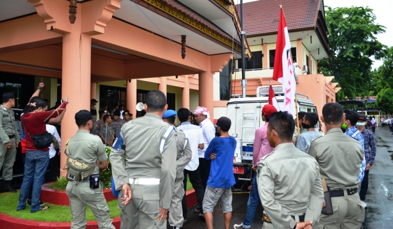 Dalam orasinya, Korlap Abdul Hatap menuding PU melanggar aturan dengan membangun jalan di atas lahan milik Mulyadi tanpa seijin pemiliknya. Meski pemilik lahan menolak dibangun jalan, namun Dinas PU tetap memaksa. Sebenarnya masalah itu sudah dikomunikasikan dengan Dinas PU, tapi sampai sekarang belum ada penyelesaian. Karenanya massa mendesak untuk membongkar jalan yang membelah lahan milik Mulyadi. Jika tuntutan tersebut tidak dipenuhi massa mengancam akan melakukan pemblokiran jalan dimaksud. Saat itu massa ditemui Kabag Humas dan Protokol Setda Sumbawa, Rachman Anshori M.SE. Kepada massa, Anshori menyatakan siap mendampingi massa untuk melakukan hearing di DPRD Sumbawa, sekaligus menfasilitasi pertemuan dengan Bagian Aset Setda Sumbawa dan Dinas PU Sumbawa.
