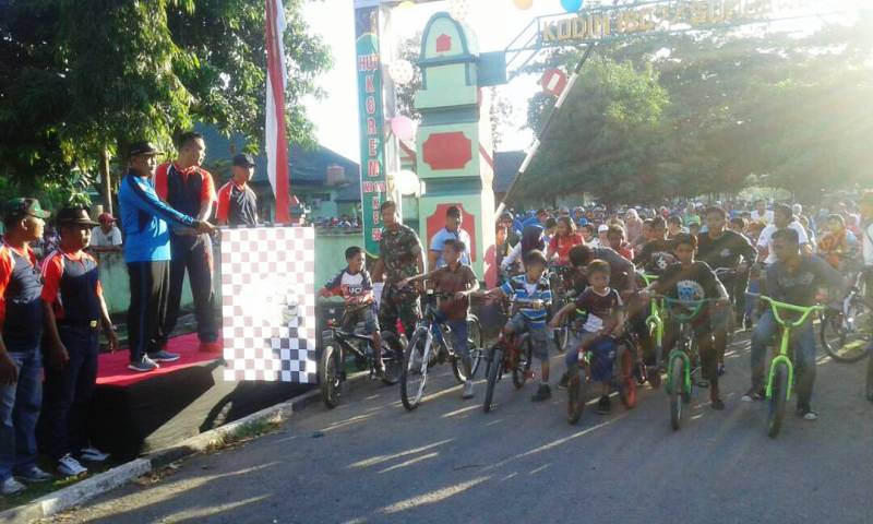 Hari Ulang Tahun (HUT) Korem 162 Wirabhakti ke-56 dan Persit Kartika Chandra Kirana ke-71 di Kabupaten Sumbawa berlangsung meriah. Pasalnya Kodim 1607 Sumbawa menggelar sepeda santai yang diikuti ribuan orang dari berbagai kalangan. Selain dapat sehatnya, pada kegiatan yang berlangsung Minggu (14/5) pagi ini, peserta dapat membawa pulang ratusan hadiah menarik, salah satunya sepeda motor. Tampak di antara peserta Dandim 1607 Sumbawa, Letkol ARM Sumanto S.Sos dan Kapolres Sumbawa, AKBP Yusuf Sutejo SIK MT. Para peserta mengambil start dan finish di Makodim 1607 Sumbawa.