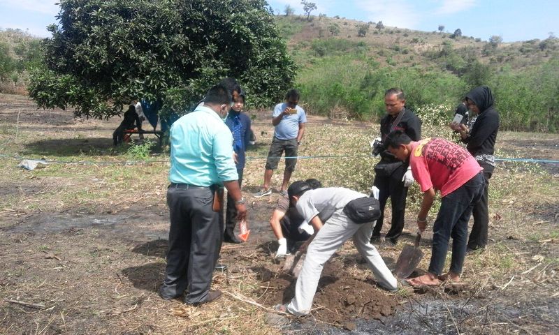 Masyarakat Desa Sepayung Kecamatan Plampang, heboh. Sebuah gundukan berbentuk kuburan kecil ditemukan di sebuah lahan wilayah setempat dalam kondisi dikerubungi lalat, Kamis (27/7) siang tadi. Karena curiga ada yang tidak beres terkubur di dalamnya, warga melaporkannya ke Polsek Plampang. Saat itu juga Polsek langsung berkoordinasi dengan Tim Identifikasi Satuan Reserse dan Kriminal Polres Sumbawa serta Tim Medis Puskesmas Plampang guna melakukan pembongkaran, olah TKP dan identifikasi.