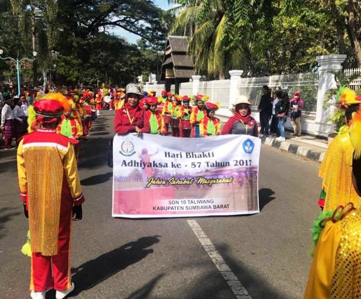 Puluhan marchingband Sekolah Dasar/Madrasah Ibtidaiyah (SD/MI) dari Kabupaten Sumbawa dan Kabupaten Sumbawa Barat (KSB) ambil bagian dalam Lomba Drumband dalam rangka Hari Bhakti Adhiyaksa (HBA) ke-57. Kegiatan yang mulai dilaksanakan, Rabu (19/7) kemarin ini diawali dengan Parade Pembukaan mulai dari Jalan Merdeka Lapangan Pahlawan hingga Kantor Kejaksaan Negeri Sumbawa. Sejumlah marching band ini dilepas secara resmi oleh Bupati Sumbawa diwakili Sekda, Drs H Rasyidi. Turut hadir Kajari Sumbawa, Wakil Ketua DPRD Sumbawa, Ketua Pengadilan Negeri Sumbawa, Dandim dan Kapolres, serta sejumlah pejabat dari KSB.