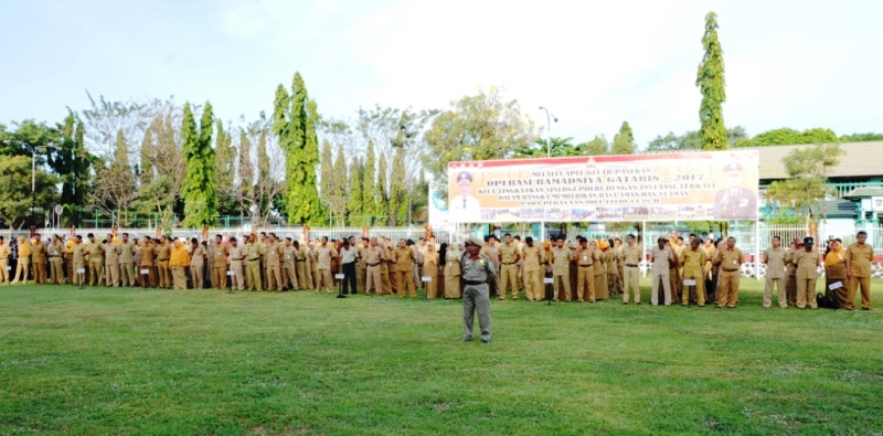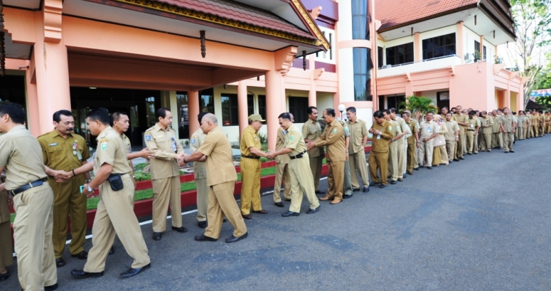 Senin (3/7) tadi merupakan hari pertama masuk kerja setelah cuti bersama Hari Raya Idul Fitri 1438 H. Pemerintah Kabupaten Sumbawa langsung menggelar upacara pada Senin pertama Bulan Juli sekaligus dirangkaikan dengan halal bihalal.