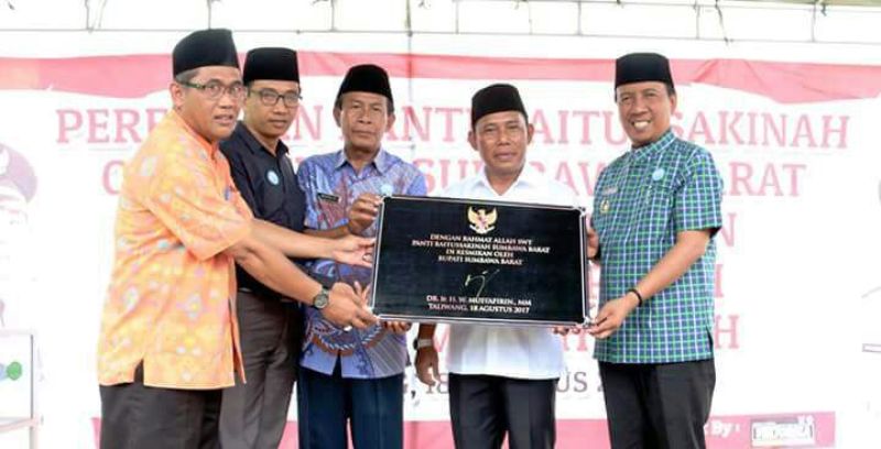 Sebelum meresmikan Panti Asuhan Baitussakinah, Ketua Yayasan H. Ahmad Rusli memasang pin Gerakan Berinfaq kepada Bupati Sumbawa Barat, Wakil Bupati, Asisten I dan Anggota DPRD KSB. Dalam peresmian Panti Asuhan Baitussakinah ini, Bupati menandatangani prasasti lalu menggunting pita di depan pintu Panti sebagai tanda diresmikannya Panti Asuhan pertama di Kabupaten Sumbawa Barat ini. (HEN/SR)