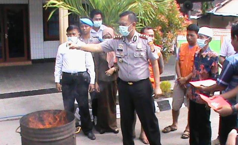 Shabu seberat lebih dari satu ons hasil tangkapan terbesar Polres Sumbawa, dimusnahkan Rabu (2/8) kemarin. Pemusnahan barang bukti senilai ratusan juta yang dipimpin Kapolres Sumbawa, disaksikan pejabat BNN, Kejaksaan, Pengadilan Negeri Sumbawa, tokoh masyarakat, serta dua orang pemilik dan pengedar shabu, KH alias Her warga Kecamatan Buer dan RN warga Kecamatan Unter Iwis. Pemusnahan tersebut dengan cara dibakar.