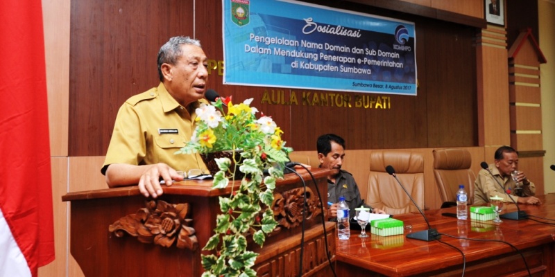 Upaya mendorong terciptanya penyelenggaraan pemerintahan yang transparan berbasis elektronik, Pemerintah Kabupaten Sumbawa melalui Dinas Komunikasi Informatika dan Statistik (Diskominfotik) menggelar Sosialisasi Pengelolaan Nama Domain dan Sub Domain dalam mendukung penerapan e-Pemerintahan di Kabupaten Sumbawa. Kegiatan itu dilaksanakan di Aula H. Madialoe ADT lantai 3 Kantor Bupati Sumbawa, Selasa (8/8).