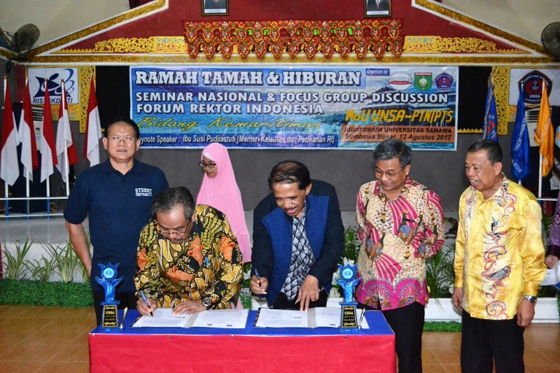 Universitas Samawa (UNSA) melakukan kerjasama dengan sejumlah perguruan tinggi (PT) yang tergabung dalam Forum Rektor Indonesia (FRI). Hal ini dibuktikan dengan penandatanganan MoU antara Rektor UNSA dengan sejumlah Rektor dan Ketua FRI di Auditorium Sribonyo UNSA, Sabtu (12/8) malam.