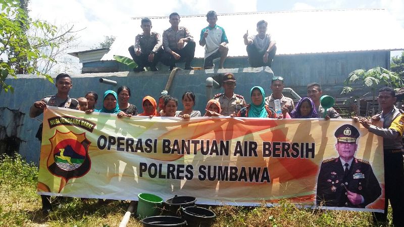 Kekeringan sudah melanda sejumlah wilayah di Kabupaten Sumbawa. Kondisi ini membuat masyarakat kesulitan mendapatkan air bersih untuk kebutuhan hidupnya sehari-hari. Selain sungai mulai menyusut, juga sudah banyak sumur warga yang mengering. Tanggap terhadap kesulitan masyarakat, Polres Sumbawa tergerak untuk mendistribusikan air bersih. Ada beberapa titik yang disambangi. Menggunakan mobil watercanon, air tersalurkan dan direspon warga dengna penuh suka cita. Seperti di Dusun Ketanga, Desa Sebasang, Kecamatan Moyo Hulu, Kamis (7/9) kemarin. Dalam pendistribusian air bersih ini, tim Sabhara didampingi Kapolsek Moyo Hulu IPTU I Made Surana. Desa tersebut merupakan salah satu desa yang terdata telah mengalami kekeringan serta membutuhkan air bersih. Selain mendistribusikan air bersih, anggota Sabhara bersama anggota Polsek setempat ikut membantu warga mengangkut air bersih tersebut hingga ke rumah masing-masing terutama yang berusia lanjut. Ini sebagai wujud rasa kebersamaan dan sosial jajaran institusi Polri kepada warga masyarakat. “Pendistribusian air bersih oleh Polres Sumbawa tersebut merupakan salah satu bentuk rasa solidaritas institusi Polri terhadap masyarakat yang mengalami kekeringan di beberapa daerah khususnya yang berada di Moyo hulu,” ungkap Kabag Ops Polres Sumbawa, Komisaris Polisi (Kompol) Yusuf Tauziri SIK, Jumat (8/9).