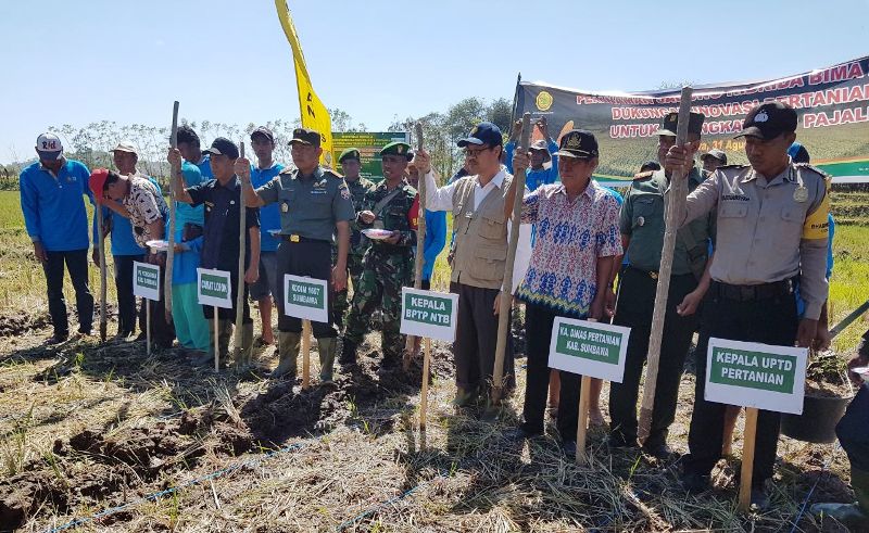 Balai Pengkajian Teknologi Pertanian (BPTP) Provinsi NTB, menginisiasi penanaman Jagung Hibrida Bima 20 URI di Desa Berora Kecamatan Lopok, Kabupaten Sumbawa, belum lama ini. Dalam melaksanakan kegiatan ini, BPTP menggandeng Kodim 1607 Sumbawa. Kegiatan tersebut dilakukan untuk meningkatkan Upsus (upaya khusus) Padi Jagung dan Kedelai (Pajale). “Ini juga untuk meningkatkan dan memotivasi masyarakat agar menanam jagung di musim tanam ketiga (MT-3), sehingga dalam setahun para petani selalu menanam 2 kali padi dan sekali jagung,” kata Letkol (ARM) Sumanto, S.Sos, Sabtu kemarin.