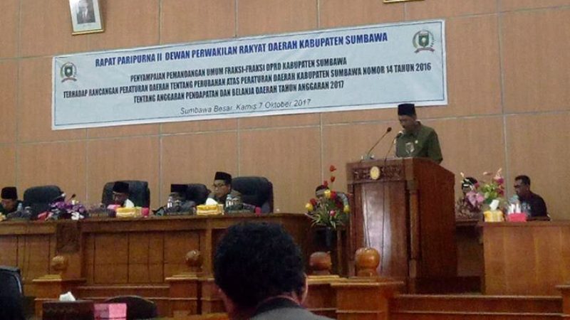 Pendapatan Asli Saerah (PAD) Kabupaten Sumbawa yang diproyeksikan meningkat mendapat apresiasi dari Fraksi Nasional Demokrat (Nasdem) DPRD Sumbawa saat menyampaikan pemandangan umumnya pada Rapat Paripurna tentang Raperda APBD-P 2017, belum lama ini. Fraksi ini tetap meminta pemerintah daerah terus mencari formulasi agar PAD Kabupaten Sumbawa dari tahun ke tahun terus meningkat dengan menggali sumber-sumber potensi pendapatan asli daerah.