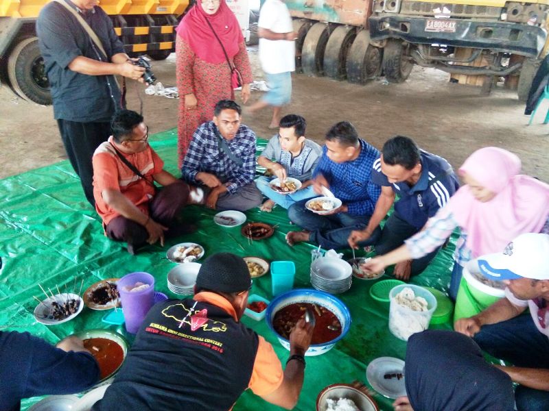 Ada yang berbeda pada Hari Raya Qurban (Idul Adha) 1438 H, Jumat (1/9) kemarin. Di saat orang, lembaga atau instansi menyembelih hewan qurban lalu daging mentahnya dibagikan, tapi Balai Prasarana Jalan Pulau Sumbawa melakukan hal yang sedikit berbeda. Selain membagikan daging hewan qurban, instansi yang dipimpin Jamaluddin Redy S.Sos MT ini juga mengajak masyarakat untuk bersantap. Hal ini dilakukan selain mereka dapat membawa pulang daging, juga bisa menikmatinya langsung. Daging sapi itu dibuat sate sambal kecap, sate sambal jeruk dan sate sambal mangga. Selain itu daging sapi juga diolah menjadi Goreng Samawa yang ditangani langsung oleh ahlinya. Benar-benar kuliner yang maknyuss. Tidak ketinggalan para jurnalis ikut menyantap hidangan sedap ini diiringi musik elekton dengan suara sederhana penyanyi dadakan.
