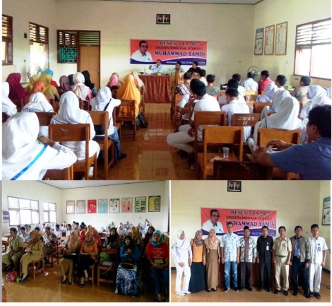 Misalnya di SMA Islam. Sadino S.Pd mewakili Yayasan Roudhatus Sholihin—lembaga yang menaungi sekolah itu berharap Sekretaris Komisi II DPRD ini dapat membenahi halaman sekolah yang setiap musim hujan digenangi air dan berubah menjadi sawah. Berlumpur, becek dan membentuk kubangan. Kondisi itu sangat mengganggu para pelajar dan guru yang ingin memanfaatkan halaman tersebut untuk upacara dcan kegiatan ekstrakurikuler. Ia berharap halaman itu diurug kemudian dipasangkan paving block. GTT minta diperhatikan dan diperjuangkan persoalan kesejahteraannya. Sebab beban kerja GTT dan guru swasta ini hampir sama dengan guru PNS. Diharapkan adanya alokasi anggaran. Dulu ada anggaran BOMDA yang bisa dialokasikan untuk GTT dan guru swasta, kini sudah tidak ada lagi. Kemudian ada beberapa kelas yang lantainya belum dikeramik sehingga terkesan kumuh dan sangat mempengaruhi kenyamanan siswa dalam proses belajar mengajar. “Kami harap aspirasi ini bisa diperjuangkan,” pintanya.