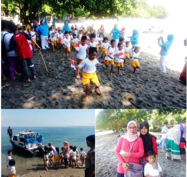 Kepala TK setempat, Magdalena Dora S.Pd yang ditemui di lokasi mengatakan, kegiatan ini merupakan puncak dari beberapa kegiatan yang telah dilaksanakan. Sesuai dengan tema kegiatan “Alam Semesta” pihaknya mengajak anak-anak ke alam terbuka melihat langsung keadaan yang sesungguhnya. Diharapkan anak-anak dapat mengenal dan mencintai lingkungannya sekaligus memuji kebesaran tuhan yang menciptakan. Didampingi Guru TK Bahyangkari, Maudara S.Pd, Magdalena menjelaskan bahwa kegiatan tersebut bukan sekedar rekreasi biasa tapi ada nilai-nilai pembelajaran yang diterapkan untuk mendukung perkembangan karakter anak. Misalnya pengembangan nilai agama, moral dan bahasa karena sebelum berangkat dan naik kendaraan diawali dengan berdoa bersama. Setibanya di lokasi mereka berbaris dan bergerak mengikuti beragam lomba. Ini masuk dalam pengembangan psykomotorik. Anak-anak berlomba menancapkan bendera di botol berisi pasir dan dari bendera itu mereka bisa mengenal warna. Ini akan mendukung pengembangan kognitif anak. Demikian dengan anak-anak yang bermain pasir membuat berbagai bentuk seperti istana, hewan dan lainnya, ini melatih seni dan kreatifitasnya. Mereka juga bermain kerang dengan cara menyusun, membuat lingkaran, huruf-huruf dan melukis di atas kerang. Pelajaran lain yang diambil dari kegiatan tersebut sambung Magdalena, adalah nilai kebersamaan yang terbangun antar anak, antar anak dengan orang tua, dan orang tua dengan guru. Semua berinteraksi dan berkolaborasi, sehingga diharapkan dapat terus terbentuk dalam rangka mendukung kemajuan pendidikan khususnya di TK Bhayangkari Sumbawa.