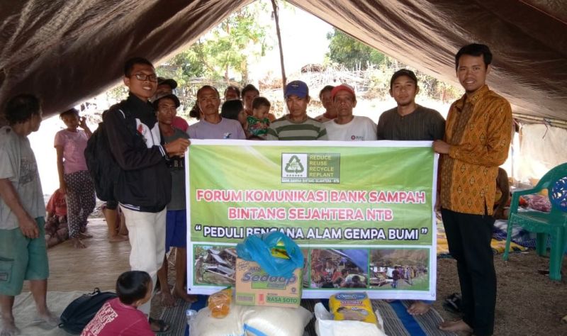 Syawal juga menginformasikan sebelum donasi ini disalurkan, anggota FK-BSBS NTB melakukan penggalangan dana melalui aplikasi group Whatsapp. Group tersebut terdiri dari 50 direktur Bank Sampah se-Pulau Lombok. “Dalam tempo dua hari donasi terkumpul dan langsung disalurkan dalam bentuk kebutuhan logistik kepada para korban gempa. Mereka berdonasi dengan sampah plastik yang telah mereka kumpulkan,” tukas Syawal.