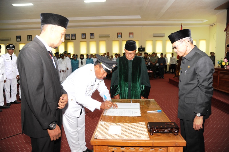 Hal yang segera dilakukan agar hajat tersebut dapat dijalankan dengan baik dan terarah, Bupati mengingatkan para kepala desa yang dilantik ini segera menyusun RPJMDes-nya paling lambat 3 bulan setelah pelantikan, demikian pula dengan RKPDes dan APBDes. Hal penting lainnya yang harus menjadi perhatian para kepala desa terpilih adalah agar dalam memimpin desa dapat dilaksanakan dengan lebih baik dari sebelumnya atau bahkan lebih aspiratif, kreatif, inovatif, dan cepat tanggap terhadap perkembangan situasi dan kondisi masyarakatnya, dengan terus menumbuhkembangkan partisipasi dan peran serta aktif masyarakat di desa masing-masing. Kemudian tidak mengganti perangkat desa karena alasan politis. “Bangun kerjasama yang baik, tumbuhkan kesadaran dan peran aktif dari seluruh staf sehingga suasana kerja akan terasa nyaman dan pelaksanaan tugas administrasi kedinasan serta kebijakan kemasyarakatan dapat berjalan sebagaimana yang diharapkan bersama,” tandasnya.