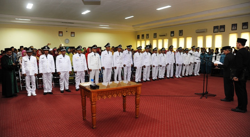 Bupati Sumbawa, H.M. Husni Djibril B.Sc resmi melantik 17 kepala desa hasil Pilkades serentak, Rabu (15/8) sore tadi. Hanya satu kades yakni Kades Pamanto Kecamatan Empang yang tidak terlihat. Dari hasil konfirmasi, kades bersangkutan sedang melaksanakan ibadah haji di Baitullah. “Dan dari 18 kepala desa terpilih, hari ini saya melantik 17 kepala desa secara serentak, karena seorang kepala desa terpilih sedang menunaikan ibadah haji, yaitu Desa Pamanto Kecamatan Empang,” kata Bupati saat memberikan sambutan usai pelantikan di Lantai III Kantor Bupati. Hadir menyaksikan pelantikan ini di antaranya Wakil Bupati Drs. H. Mahmud Abdullah, Pimpinan DPRD Dr. Drs. A. Rahman Alamudy SH M.Si dan Kamaluddin ST M.Si, Sekda Drs. H. Rasyidi Mukhtar, para asisten, kepala OPD, mantan penjabat Kades, istri kades terpilih dan beberapa tamu undangan.