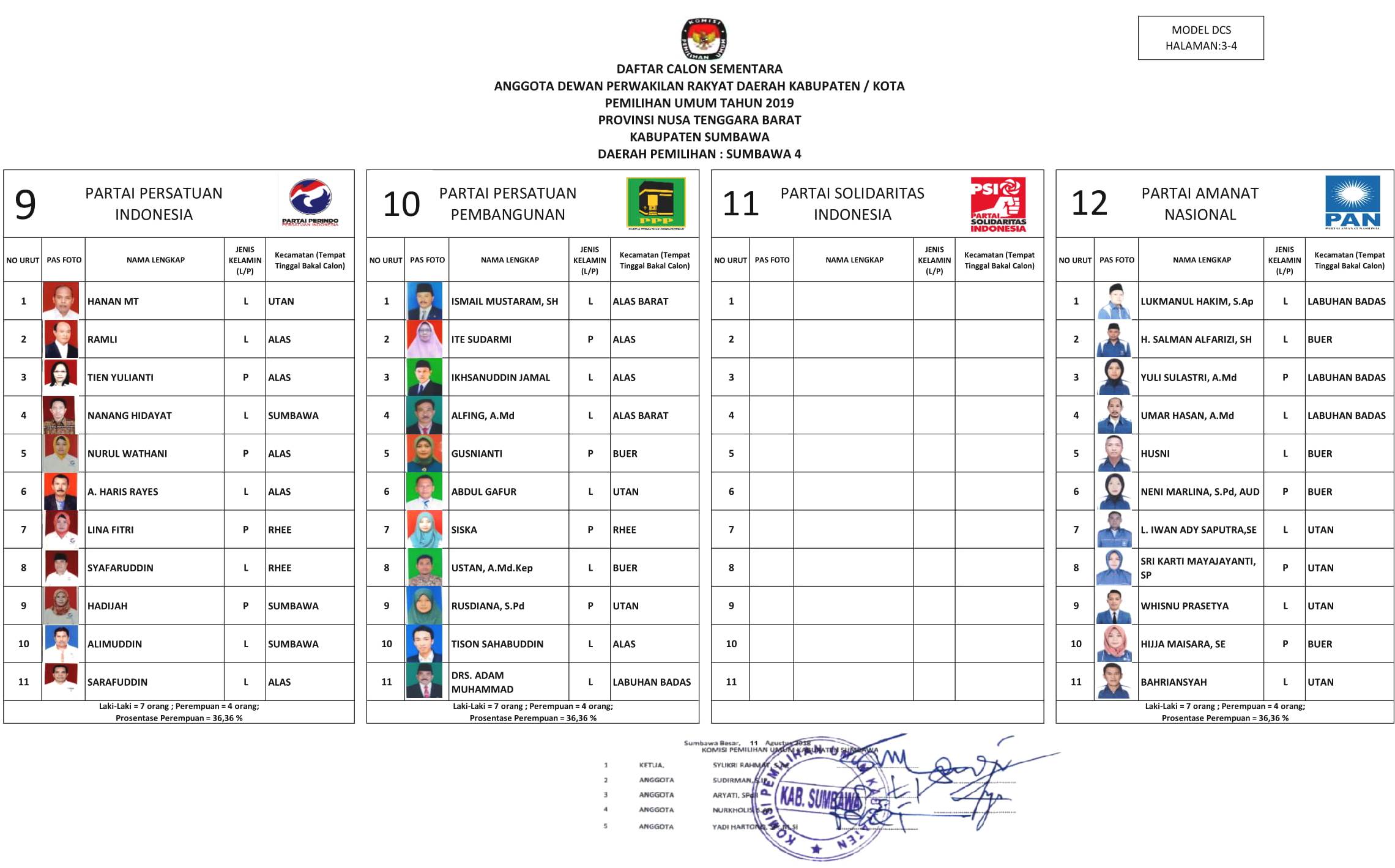 Daftar Calon Sementara Anggota DPRD Kabupaten Sumbawa Dapil 4 Pemilu 2019 Agustus 12, 2018Agustus 12, 2018oleh zensumbawa-1505 Dilihatoleh zensumbawa Kecamatan Rhee, Utan, Buer, Alas dan Alas Barat SUMBAWA BESAR, SR (12/08/2018) Post Views: 1,505 Jangan LewatkanLaporan Hasil Reses I DPRD Sumbawa Diparipurnakan, Tiga Bidang Jadi Prioritas Aspirasi WargaParipurna Perdana DPRD Sumbawa 2026 Bahas Ranperda, Pansus DibentukPerkuat Kesiapsiagaan Inklusif, BPBD Sumbawa Bentuk Unit Layanan Disabilitas BencanaHasil Reses Jadi Prioritas, Banmus DPRD Sumbawa Tetapkan Jadwal ParipurnaLegislator Asal Ropang Dorong Pemda Perkuat Pemberdayaan Masyarakat Berbasis Kemiri