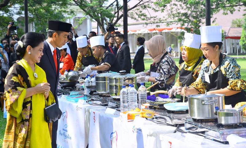 Selepas mengukuhkan anggota Pasukan Pengibar Bendera Pusaka (Paskibraka) di Istana Negara, Rabu, 15 Agustus 2018, Presiden Joko Widodo beserta Ibu Negara Iriana Joko Widodo menyaksikan para juara Lomba Masak Ikan Nusantara (LMIN) 2018 beraksi. Sebanyak 10 pemenang dan finalis lomba ini memamerkan keahliannya di halaman tengah Istana Kepresidenan, Jakarta. Sambil berjalan, Presiden yang mengenakan setelan jas lengkap dengan peci hitam sempat berbincang singkat dengan para peserta. Salah satunya adalah Juara I LMIN 2018 Putri Ayu Martha Tilaar asal Kota Mataram. “Kalau ini masakan apa?” tanya Presiden. “Ini sate Tanjung, Pak,” jawab Putri.