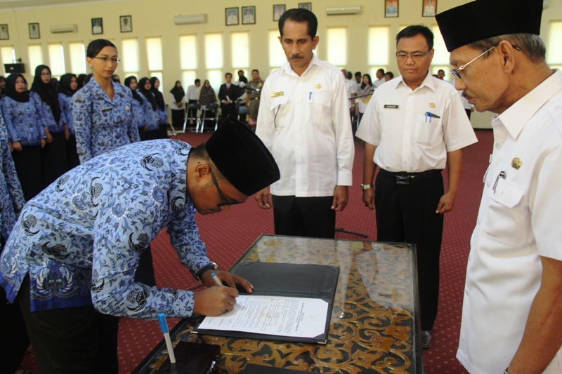 Lebih jauh dijelaskan Bupati, sejalan dengan tuntutan publik akan kinerja aparatur pemerintah yang lebih profesional, tentu menjadi tantangan tersendiri bagi setiap aparatur PNS untuk meningkatkan kualitas dan kapasitasnya, sebagai upaya pemerintah dalam menggeser paradigma masyarakat terhadap birokrasi dan layanan publik pemerintah yang selama ini dinilai kurang profesional. Terkait hal tersebut, Bupati berpesan untuk ikut membangun dan menjaga citra positif PNS dengan bekerja sebaik-baiknya dan mampu menunjukkan figur PNS yang berkualitas dan professional. Karena sejak lahirnya Undang-Undang Nomor 5 Tahun 2014 tentang Aparatur Sipil Negara, telah membawa perubahan dalam kehidupan karier PNS. Selama ini, karier PNS dianggap sebagai “zona nyaman” (comfort zone), namun dengan lahirnya undang-undang tersebut, karier PNS menjadi “zona kompetitif” (competitive zone), sehingga akan dicapai kinerja lembaga yang kualitasnya terus meningkat karena adanya kompetisi pegawai yang sehat dalam menunjukkan kinerjanya yang terbaik.
