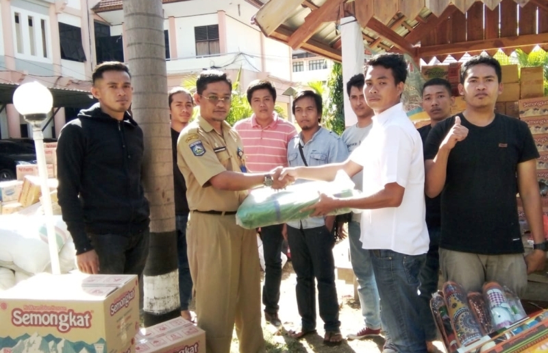 Sejumlah pemuda yang tergabung dalam Komunitas Pemuda dan Mahasiswa Empang (KPME), menyalurkan bantuan kepada korban bencana gempa tektonik yang melanda Lombok Utara, di Kantor Bupati Sumbawa, Senin (13/8). Sebelumnya pengurus KPME menggelar aksi penggalangan dana di beberapa titik di Kecamatan Empang. Aksi dalam bentuk penjualan kue dan konser amal itu dilakukan guna membantu para korban gempa Lombok yang disalurkan melalui pemerintah daerah Kabupaten Sumbawa. Dari kalkulasi hasil penggalangan dana selama tiga hari itu, berhasil dikumpulkan uang tunai Rp. 6.285.000 yang kemudian langsung dibelanjakan sejumlah barang seperti terpal, selimut, air minum, minyak telon, karpet tikar dan lain-lain. Rencananya, bantuan akan disalurkan lansung melalui Pemerintah Daerah ke titik lokasi gempa di Lombok Utara (KLU). “Bantuan ini kami serahkan kepada Kabag Pemerintahan Kabupaten Sumbawa untuk nantinya disalurkan ke KLU,” kata Adib Azmilhaq, Ketua rombongan KPME usai menyerahkan bantuan secara simbolis di Kantor Bupati Sumbawa.