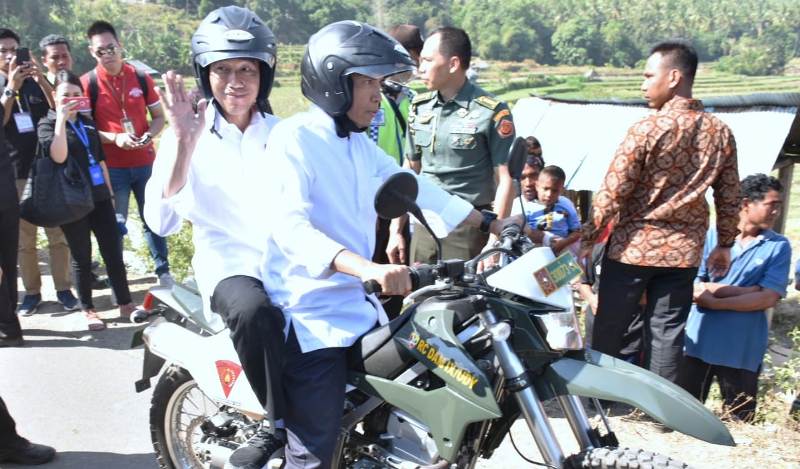 Melanjutkan kunjungan kerjanya di Kabupaten Lombok Utara (KLU), hari ini Selasa (14/8/2018), Presiden Joko Widodo dan Gubernur NTB, Dr. TGH. M. Zainul Majdi meninjau pengungsi di Dusun Terengan, Desa Pemenang Timur, Kecamatan Pemenang, KLU. Pemandangan menarik ketika Gubernur TGB membonceng Presiden Jokowi menggunakan motor trail untuk menuju lokasi tersebut. Pemandangan langka tersebut menarik perhatian ratusan pengungsi yang menyambut presiden dan Gubernur. Kehadiran Presiden dan Gubernur NTB, langsung disambut ratusan warga terdampak gempa Lombok. Warga yang sudah menunggu sejak pagi, langsung berebut salaman dengan presiden. Jokowi menyambangi satu-satu posko pengungsian yang didirikan.