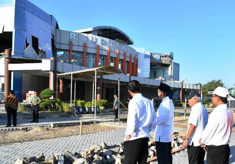 Presiden Joko Widodo pagi ini, Selasa 14 Agustus 2018, meninjau RSUD Tanjung yang berada di Kecamatan Tanjung, Kabupaten Lombok Utara, Provinsi Nusa Tenggara Barat. Saat meninjau bangunan rumah sakit yang rusak terkena dampak gempa Lombok tersebut, Presiden didampingi Menteri Pekerjaan Umum dan Perumahan Rakyat Basuki Hadimuljono, Kepala Staf Kepresidenan Moeldoko, Kapolri Jenderal Tito Karnavian, Panglima TNI Marsekal Hadi Tjahjanto, Kepala BNPB Willem Rampangilei, dan Gubernur Nusa Tenggara Barat Muhammad Zainul Majdi. Presiden dan rombongan berjalan kaki ketika melakukan peninjauan karena letaknya berdekatan dengan tenda Presiden yang berada di halaman RSUD Tanjung.