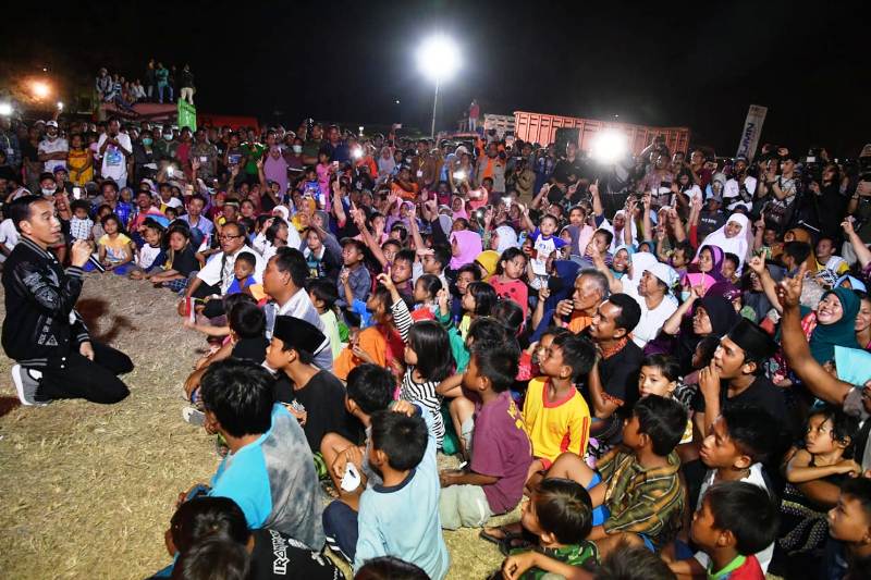 Presiden bersama rombongan kemudian meninjau dapur umum, posko pengungsian, ruang gembira anak-anak, dan rumah sakit lapangan yang merawat setidaknya 26 korban bencana gempa. Usai meninjau penanganan bagi para pengungsi di lokasi tersebut, Presiden beserta rombongan beranjak ke titik peninjauan berikutnya di Dusun Lekok, Desa Gondang, Kecamatan Gangga. Presiden sempat berdialog dengan sejumlah pengungsi mengenai bantuan apa yang paling dibutuhkan dari pemerintah pusat. Kepada Presiden, salah satu pengungsi mengharapkan bantuan biaya untuk memperbaiki dan membangun kembali rumah mereka yang roboh. “Nanti gotong royong dan dibantu pemerintah. Yang rusak berat Rp 50 juta, yang rusak sedang Rp 25 juta,” ujar Presiden kepada pengungsi tersebut.