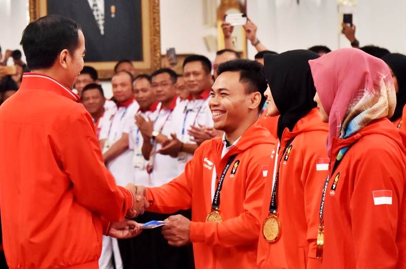 Presiden Joko Widodo merasa bangga atas perolehan medali kontingen Indonesia dalam Asian Games 2018 ini. Dengan perolehan 31 emas, 24 perak, dan 43 perunggu memastikan Indonesia berada pada posisi ke-4 teratas dalam perolehan medali. Capaian tersebut jauh melebihi target yang sebelumnya telah ditetapkan, yakni 16 emas. Perolehan emas tersebut juga menjadi rekor baru di mana pada tahun 1962 kontingen Indonesia “hanya” mampu mendulang 11 medali emas. Mulanya, Kepala Negara memang sempat was-was dengan target tersebut. Hal itu diungkapnya saat bertemu dengan para atlet peraih medali di Istana Negara, Jakarta, pada Minggu, 2 September 2018. “Dulu sebelumnya saat kita menargetkan 16 emas, banyak yang sangsi, banyak yang pesimistis. Saya ngomong bolak-balik dengan Pak Wapres, angka ini benar enggak sih 16? Ya optimistis boleh, tapi kan juga harus realistis kalkulasinya,” kata Presiden.