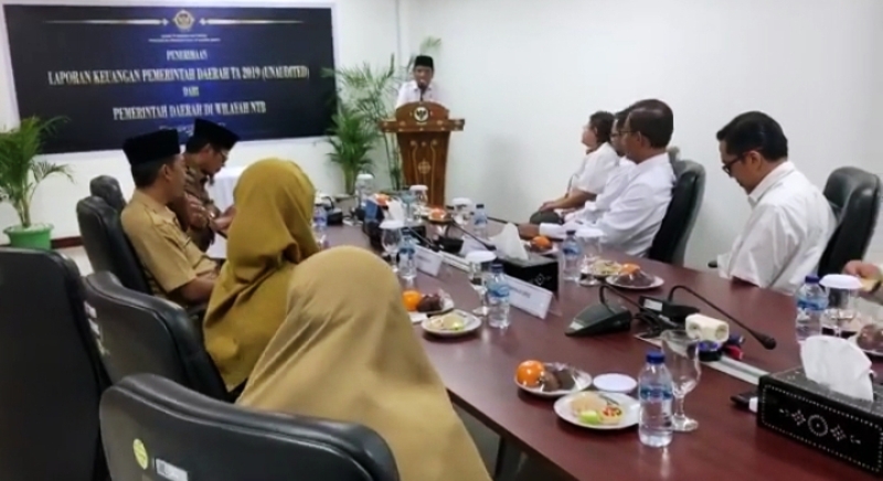 Penyerahan dipimpin oleh Wakil Bupati Sumbawa Barat, Fud Syaifuddin ST didampingi Wakil Ketua DPRD Meliza Jawas S.Sos.I., MM, Kepala Badan Pengelolaan Keuangan Daerah (BPKD) Nurdin Rahman SE, dan Inspektur Inspektorat I Made Budi Artha S.Sos MM, yang diterima langsung Kepala Badan Pemeriksa Keuangan (BPK) RI Perwakilan NTB di Kantor BPK RI Perwakilan NTB Mataram.